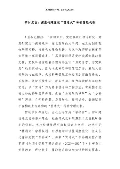 / 【七哥公文】2024年:研讨发言:探索构建党校“贯通式”科研管理机制+更多免费公文+VX:QiGeGongWen2024