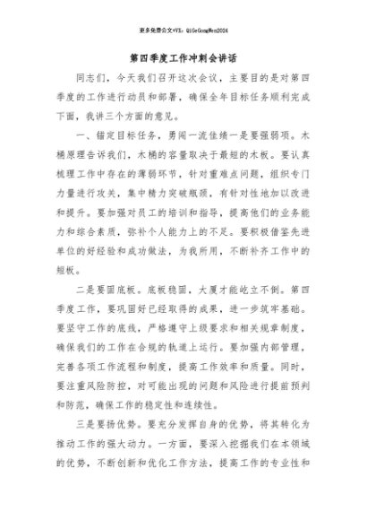 / 【七哥公文】2024年:第四季度工作冲刺会讲话+更多免费公文+VX:QiGeGongWen2024