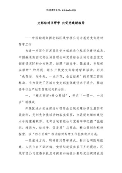 / 【七哥公文】2024年:支部结对互帮带 共促党建新格局+更多免费公文+VX:QiGeGongWen2024