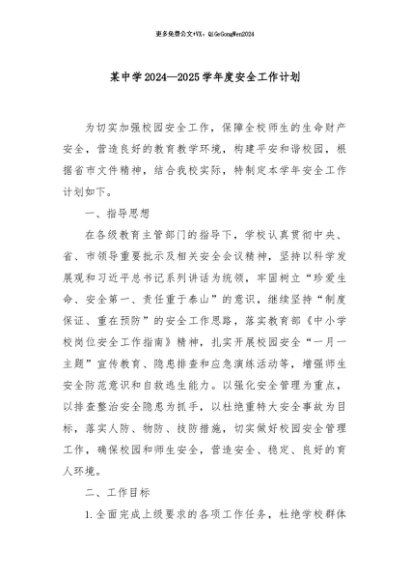 / 【七哥公文】2024年:某中学2024—2025学年度安全工作计划+更多免费公文+VX:QiGeGongWen2024
