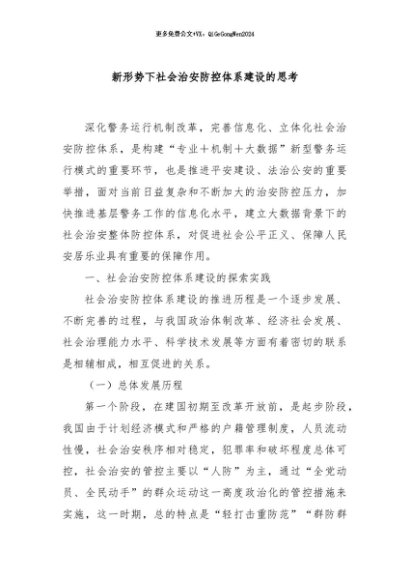【七哥公文】2024年:新形势下社会治安防控体系建设的思考+更多免费公文+VX:QiGeGongWen2024