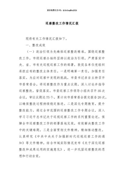 / 【七哥公文】2024年:巡察整改工作情况汇报+更多免费公文+VX:QiGeGongWen2024