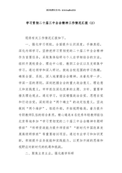 / 【七哥公文】2024年:学习贯彻二十届三中全会精神工作情况汇报(2)+更多免费公文+VX:QiGeGongWen2024