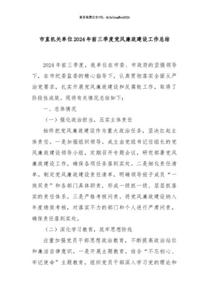 【七哥公文】2024年:市直机关单位2024年前三季度党风廉政建设工作总结+更多免费公文+VX:QiGeGongWen2024