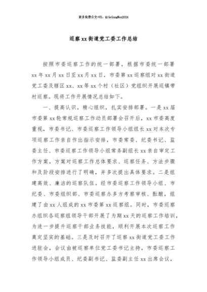 / 【七哥公文】2024年:巡察xx街道党工委工作总结+更多免费公文+VX:QiGeGongWen2024