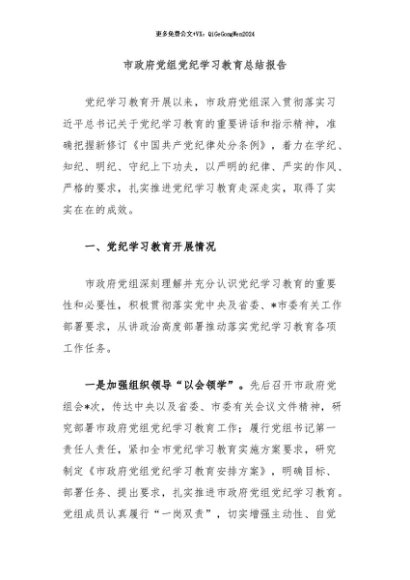 / 【七哥公文】2024年:市政府党组党纪学习教育总结报告+更多免费公文+VX:QiGeGongWen2024