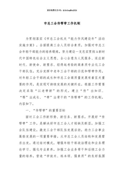 / 【七哥公文】2024年:市总工会传帮带工作机制+更多免费公文+VX:QiGeGongWen2024