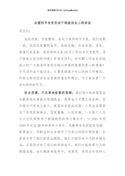 / 【七哥公文】2024年:在重阳节老党员老干部座谈会上的讲话+更多免费公文+VX:QiGeGongWen2024