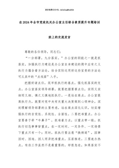 【七哥公文】2024年:在2024年全市党政机关办公室主任综合素质提升专题培训班上的交流发言+更多免费公文+VX:QiGeGongWen2024