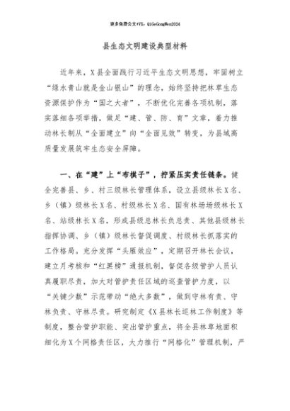 / 【七哥公文】2024年:县生态文明建设典型材料+更多免费公文+VX:QiGeGongWen2024