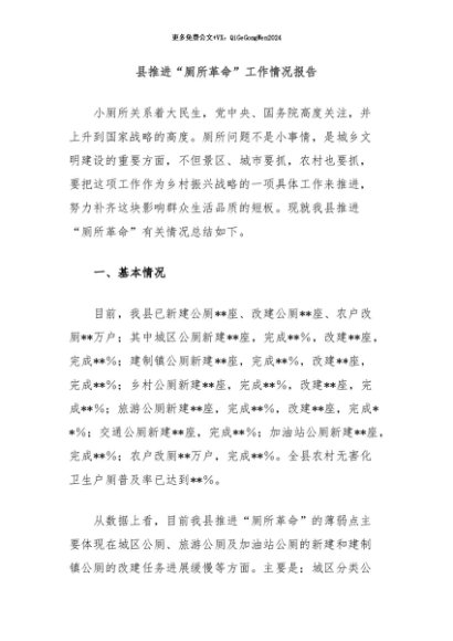 / 【七哥公文】2024年:县推进“厕所革命”工作情况报告+更多免费公文+VX:QiGeGongWen2024