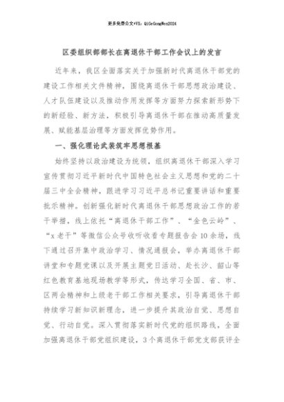 / 【七哥公文】2024年:区委组织部部长在离退休干部工作会议上的发言+更多免费公文+VX:QiGeGongWen2024