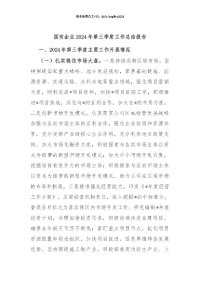 / 【七哥公文】2024年:国有企业2024年第三季度工作总结报告+更多免费公文+VX:QiGeGongWen2024
