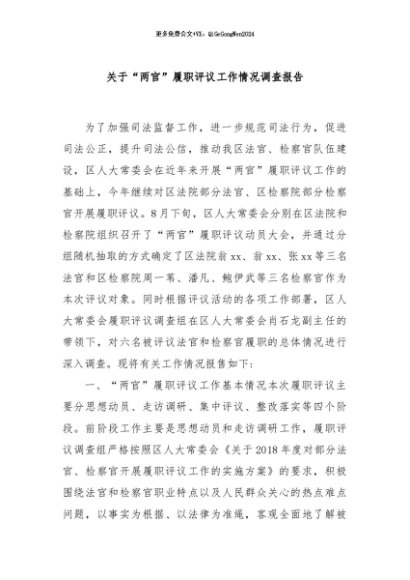 【七哥公文】2024年:关于“两官”履职评议工作情况调查报告+更多免费公文+VX:QiGeGongWen2024