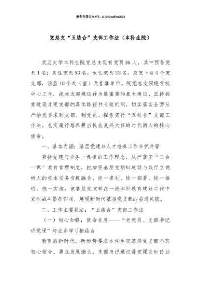 / 【七哥公文】2024年:党总支“五结合”支部工作法(本科生院)+更多免费公文+VX:QiGeGongWen2024