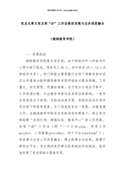【七哥公文】2024年:党总支第五党支部“4P”工作法推进党建与业务深度融合(继续教育学院)+更多免费公文+VX:QiGeGongWen2024