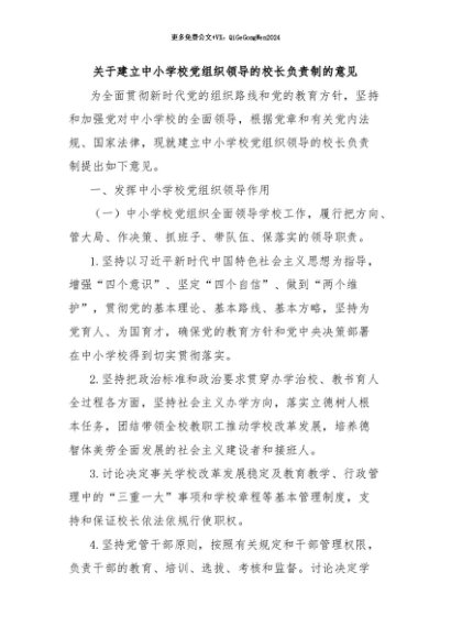 / 【七哥公文】2024年:关于建立中小学校党组织领导的校长负责制的意见+更多免费公文+VX:QiGeGongWen2024