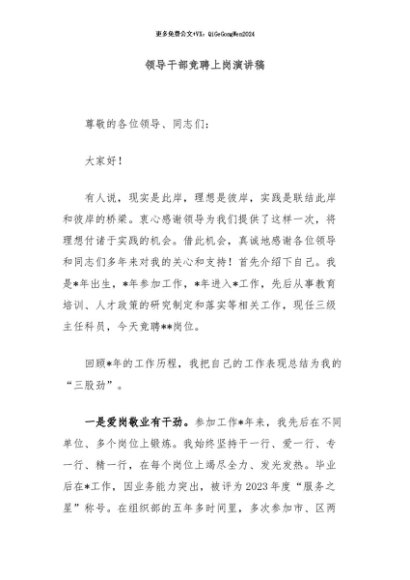 / 【七哥公文】2024年:领导干部竞聘上岗演讲稿+更多免费公文+VX:QiGeGongWen2024