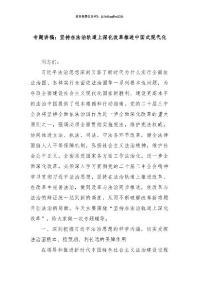 【七哥公文】2024年:专题讲稿:坚持在法治轨道上深化改革推进中国式现代化+更多免费公文+VX:QiGeGongWen2024