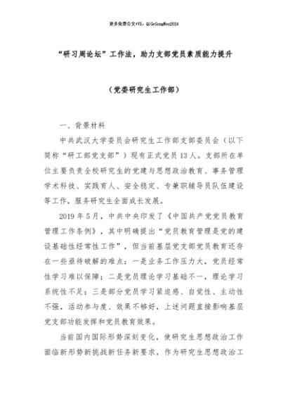 【七哥公文】2024年:“研习周论坛”工作法,助力支部党员素质能力提升(党委研究生工作部)+更多免费公文+VX:QiGeGongWen2024
