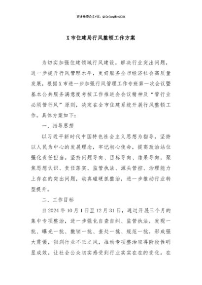 / 【七哥公文】2024年:X市住建局行风整顿工作方案+更多免费公文+VX:QiGeGongWen2024