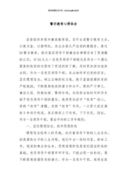 【七哥公文】2024年:警示教育心得体会+更多免费公文+VX:QiGeGongWen2024