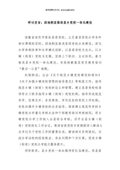 / 【七哥公文】2024年:研讨发言:因地制宜推进县乡党校一体化建设+更多免费公文+VX:QiGeGongWen2024
