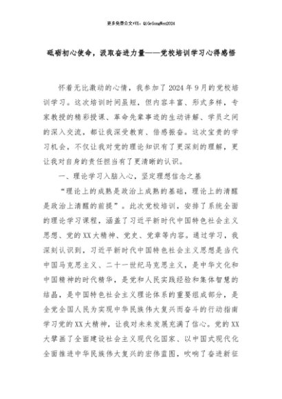 【七哥公文】2024年:砥砺初心使命,汲取奋进力量——党校培训学习心得感悟+更多免费公文+VX:QiGeGongWen2024