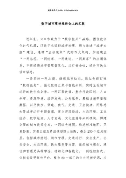 / 【七哥公文】2024年:数字城市建设推进会上的汇报+更多免费公文+VX:QiGeGongWen2024