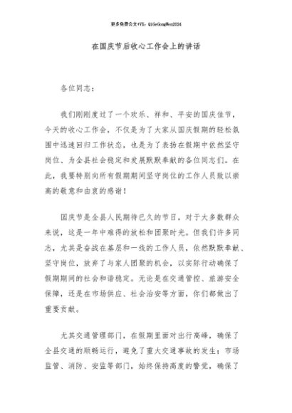 / 【七哥公文】2024年:在国庆节后收心工作会上的讲话+更多免费公文+VX:QiGeGongWen2024