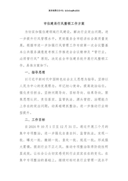 / 【七哥公文】2024年:市住建局行风整顿工作方案+更多免费公文+VX:QiGeGongWen2024