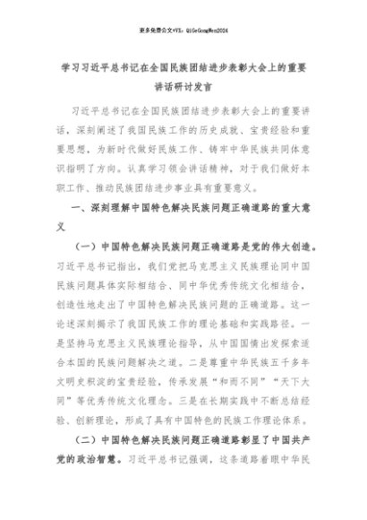 【七哥公文】2024年:学习习近平总书记在全国民族团结进步表彰大会上的重要讲话研讨发言+更多免费公文+VX:QiGeGongWen2024