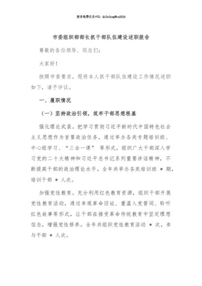 / 【七哥公文】2024年:市委组织部部长抓干部队伍建设述职报告+更多免费公文+VX:QiGeGongWen2024