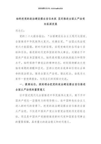 【七哥公文】2024年:始终把党的政治建设摆在首位来抓 坚定推进全面从严治党向纵深发展+更多免费公文+VX:QiGeGongWen2024