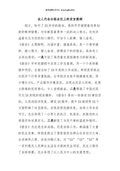 【七哥公文】2024年:在人代会分组会议上的发言提纲+更多免费公文+VX:QiGeGongWen2024