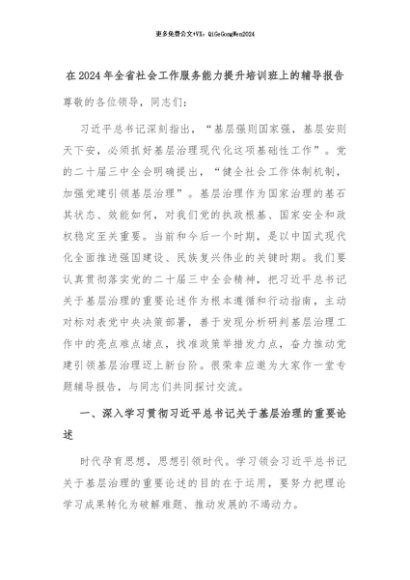 【七哥公文】2024年:在2024年全省社会工作服务能力提升培训班上的辅导报告+更多免费公文+VX:QiGeGongWen2024