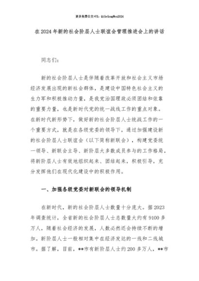 【七哥公文】2024年:在2024年新的社会阶层人士联谊会管理推进会上的讲话+更多免费公文+VX:QiGeGongWen2024