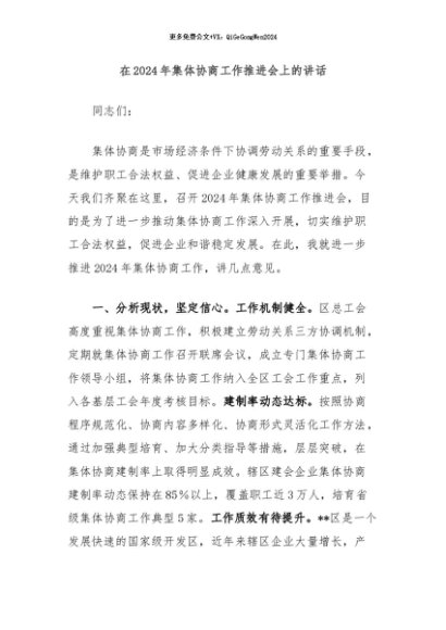 / 【七哥公文】2024年:在2024年集体协商工作推进会上的讲话+更多免费公文+VX:QiGeGongWen2024