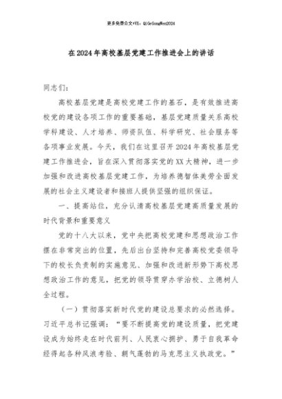 / 【七哥公文】2024年:在2024年高校基层党建工作推进会上的讲话+更多免费公文+VX:QiGeGongWen2024