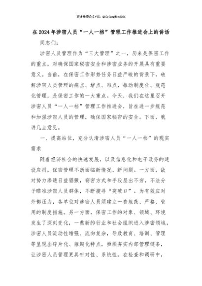 【七哥公文】2024年:在2024年涉密人员“一人一档”管理工作推进会上的讲话+更多免费公文+VX:QiGeGongWen2024
