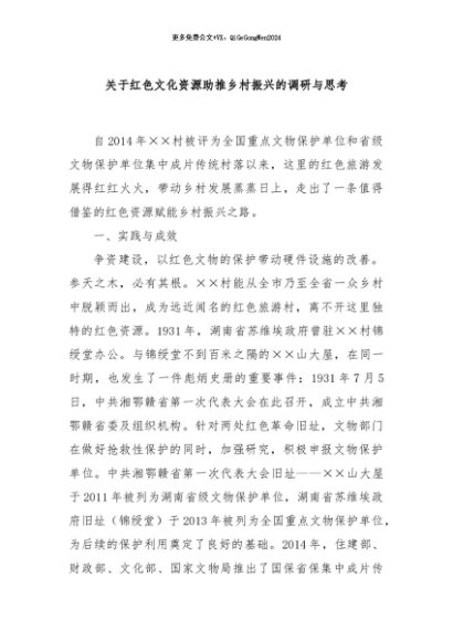 / 【七哥公文】2024年:关于红色文化资源助推乡村振兴的调研与思考+更多免费公文+VX:QiGeGongWen2024