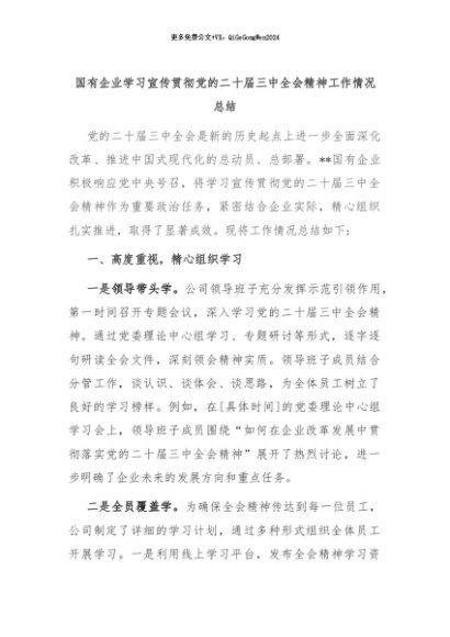 【七哥公文】2024年:国有企业学习宣传贯彻党的二十届三中全会精神工作情况总结+更多免费公文+VX:QiGeGongWen2024