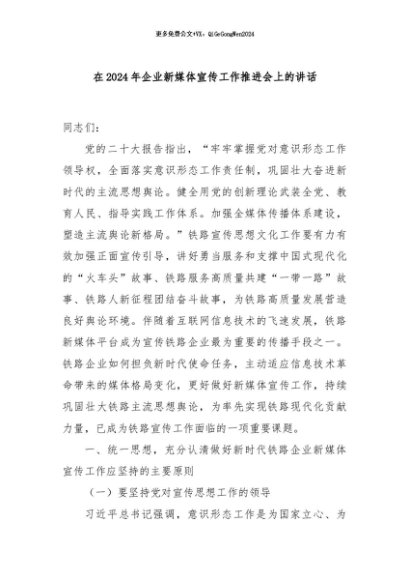 / 【七哥公文】2024年:在2024年企业新媒体宣传工作推进会上的讲话+更多免费公文+VX:QiGeGongWen2024