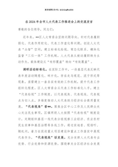/ 【七哥公文】2024年:在2024年全市人大代表工作推进会上的交流发言+更多免费公文+VX:QiGeGongWen2024