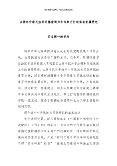 【七哥公文】2024年:以铸牢中华民族共同体意识为主线努力打造富有新疆特色的省级一流党校+更多免费公文+VX:QiGeGongWen2024