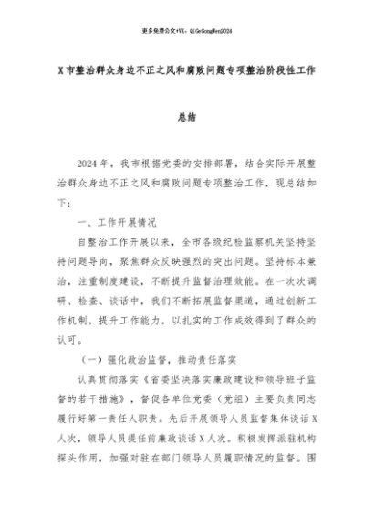 【七哥公文】2024年:X市整治群众身边不正之风和腐败问题专项整治阶段性工作总结+更多免费公文+VX:QiGeGongWen2024