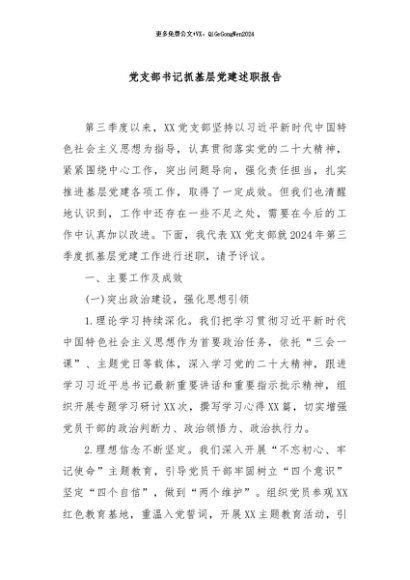 / 【七哥公文】2024年:党支部书记抓基层党建述职报告+更多免费公文+VX:QiGeGongWen2024