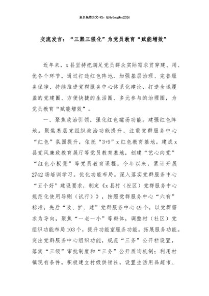 / 【七哥公文】2024年:交流发言:“三聚三强化”为党员教育“赋能增效”+更多免费公文+VX:QiGeGongWen2024