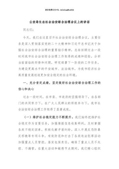 / 【七哥公文】2024年:公安局长在社会治安综合治理会议上的讲话+更多免费公文+VX:QiGeGongWen2024