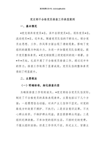 / 【七哥公文】2024年:党支部不合格党员排查工作典型案例+更多免费公文+VX:QiGeGongWen2024
